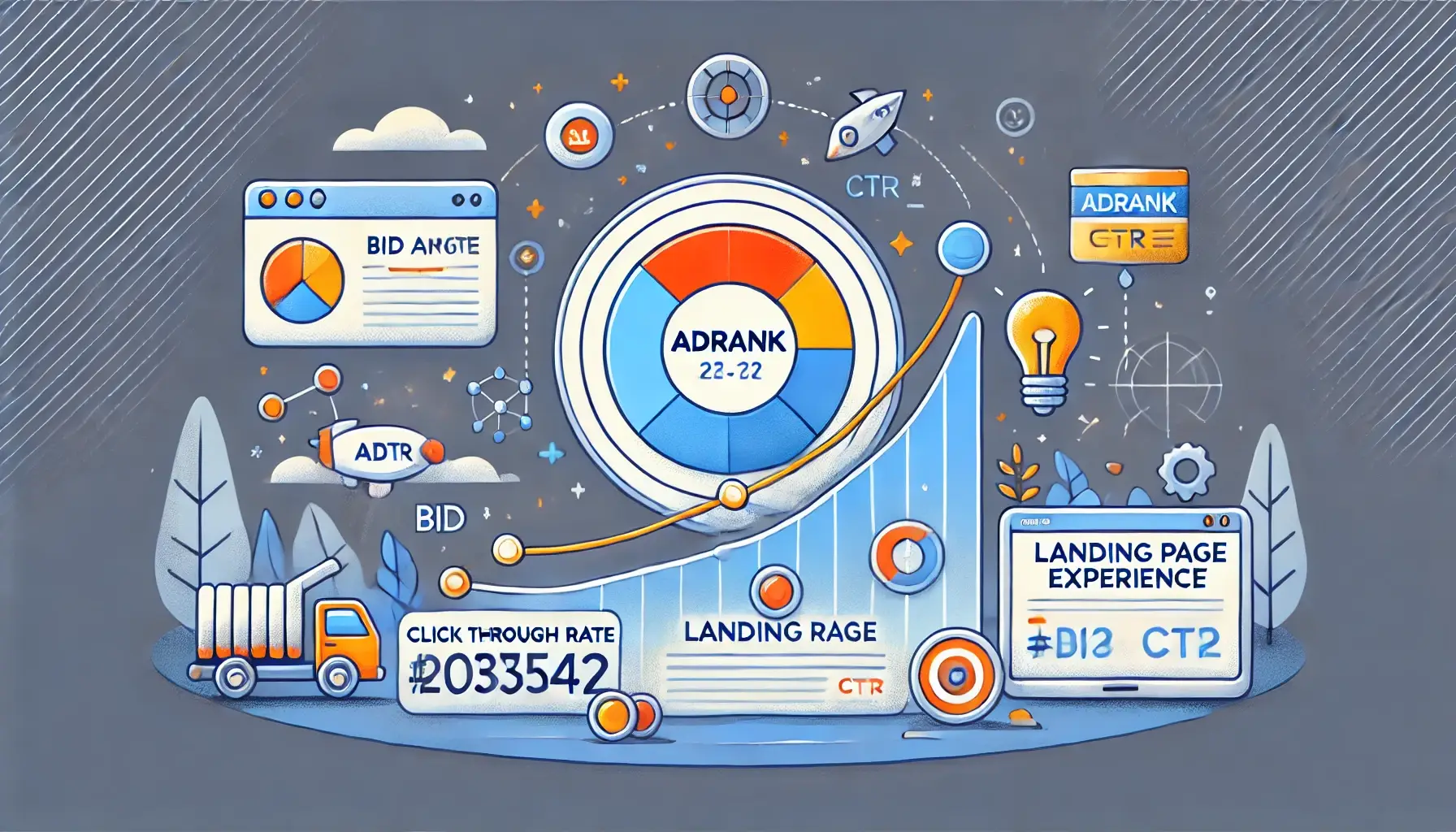 Google assigns an AdRank score to every paid search ad, determining its position in search results. AdRank is influenced by three main factors: